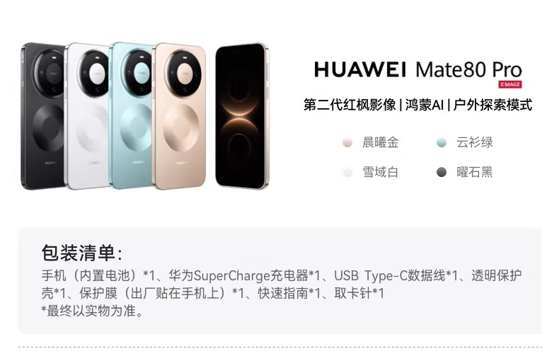 HUAWEI Mate 80 Pro 麒麟9030系列芯片 第二代红枫影像 鸿蒙AI 华为手机鸿蒙华为官方旗舰店